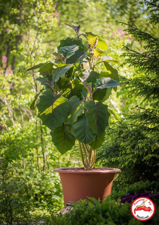 This is truly a nice and great looking plant. It will grow extremely rapidly and it overwinters quite easily indoors. It produces fruits which should be quite tasty. Even as a decorative plant it's simply amazing with the huge leaves and pretty, hairy foliage. This plant in a pot is actually as tall as a man. Definitely an eye-catcher. :) As a side note, I have grafted a tomato to one branch of this plant and it seems to have survived the process. :) More details to come later.