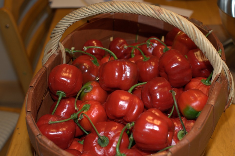 A basket filled with some Red Peruvian Rocotos! They taste great! Seeds: