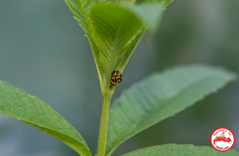 Good bugs (ladybug relative) are mating on Lippia plant. That means more good guys to eat pests. :)