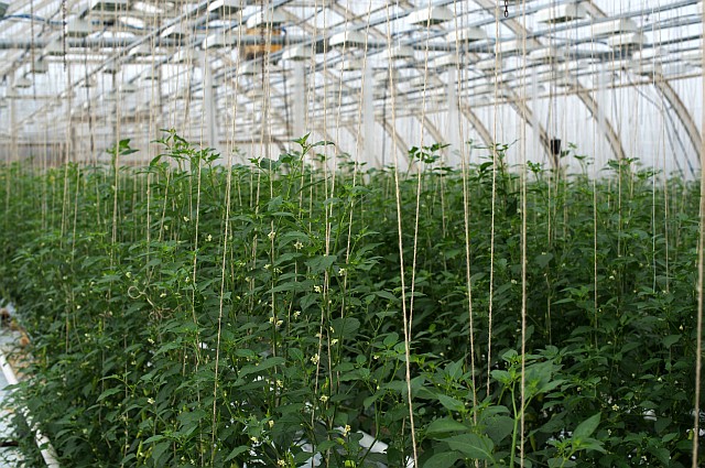 Growing in the huge greenhouse. Reaching 2 meters. They were still very small at the beginning of the last month: