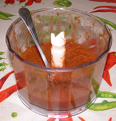We made some sauce with my chilehead friend. Damn it was HOT! Mosse used this as a "coolant" after eating some deadly hot chinenses... that resulted some nice fiery face pictures! :)