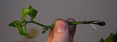 Cutting starting to root! Clonex-rooting hormone worked very well again! Every single Numex Suave-cutting rooted, which is quite unusual when it comes to peppers. Outstanding!