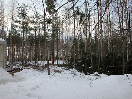 I cut down some trees so there are only small ones left which won't block the evening sun at summertime. I also got lots and lots of wood for the furnace!