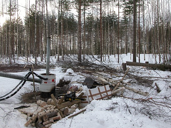 I cut down lot of trees to make the north side of the greenhouse more luminous. Enough wood to warm up the greenhouse for the beginning of the season!