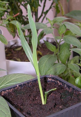 This corn was germinated at the same time as the one growing in a bubbler. This one will be grown in a big pot outdoors.