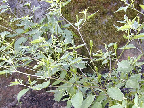 Immature pods and flowers of "Cobincho" which is growing in the ground.