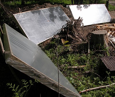 They're filled with water which will be heated by the sun and moved into the greenhouse concrete with a water pump.
