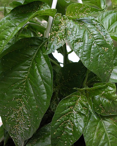AphidsI have one isolated Datil (C. chinense) outdoors which is heavily crowded with aphids.
