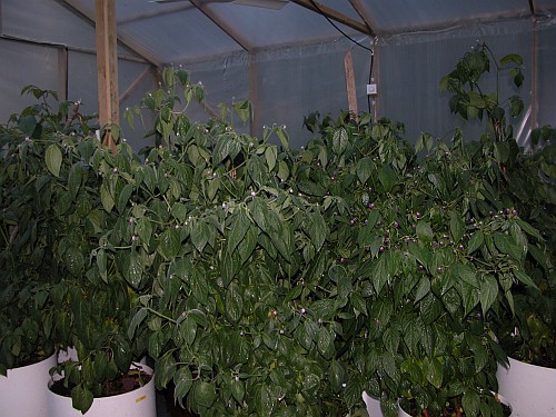 Largest plants reach almost two meters with the pots! Still several months of the season left in the greenhouse!