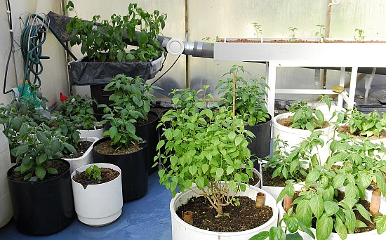 Mostly rocotos showing on this picture. CGN 19198 (C. sp) in the middle of the pic. Jalapeno EBB & flood system showing against the plastic of the greenhouse.