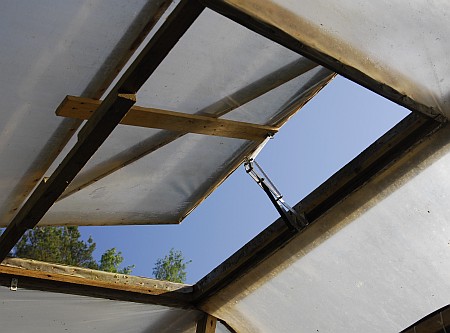 I turned the direction of the hatch at the cold side of the greenhouse so the automatic hatch opener has enough power to open the hatch enough. Works much better now!