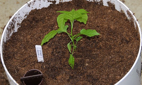 Tepin planted with a stone for bonsai chile purposes. More about the bonsai project from the growing section!