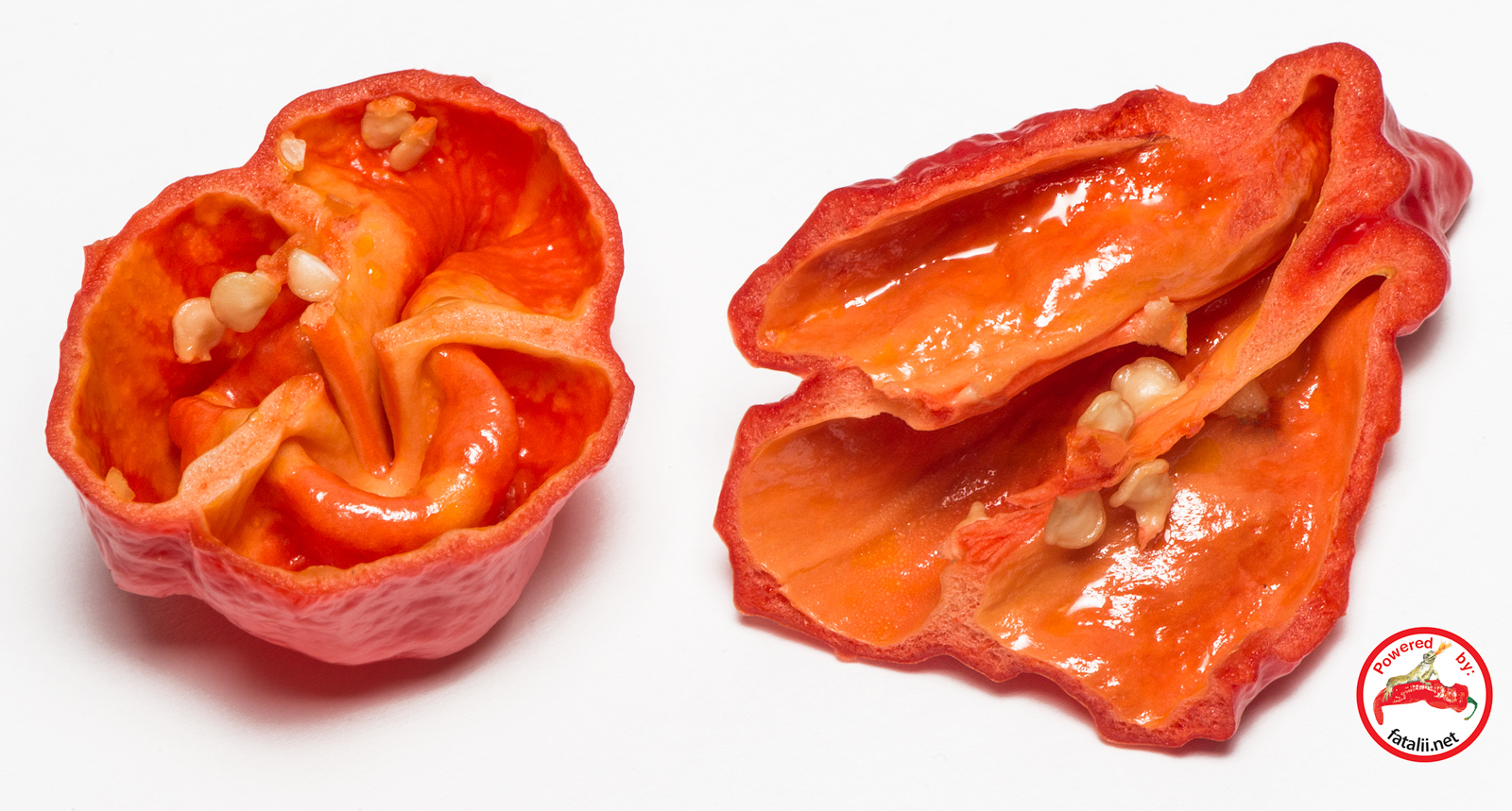 Comparison of the hottest varieties.On the left: Moruga Scorpion, currently the hottest officially measured pod with over two million scoville heat units.