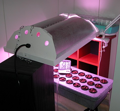 I`m using a 125w fluorescent tube (purple) on top of the cuttingboard and