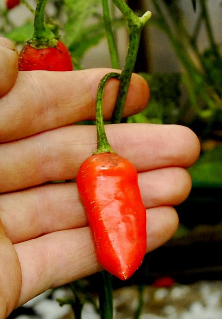Mature pod. Very useful tasty baccatum with moderate-hot pungency. Seeds available soon at: