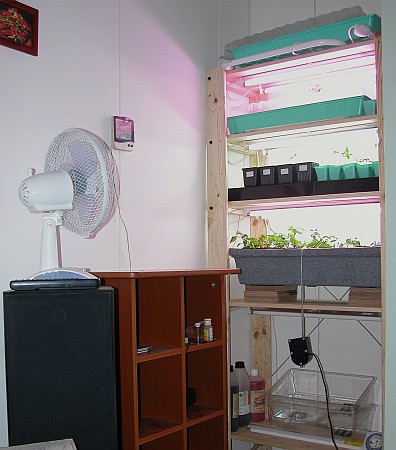 New shelf for germinated seedlings. When the seedlings grow a little, they will be transferred into the growing cellar.