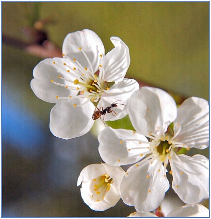 Ant and cherry flowers
