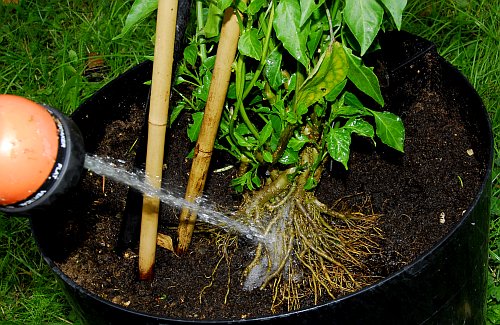 I'm rinsing one of my bonchi project`s roots here. This is a easy way to expose the roots for the sun to make them dark and woody fast. Of course, it`s always a best idea to do this when watering the plants. :)