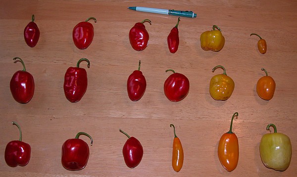 C04896, Super pube, CAP 217, PI 585260, CGN 22797, PI 387838 'Locato', Mexican Red, CAP 487, PI 355394, Grif 9345, CAP 1033, PI 593616, CGN 22796, Red Peruvian Rocoto, PI 355812, PI 614001, PI 585267, Canario.