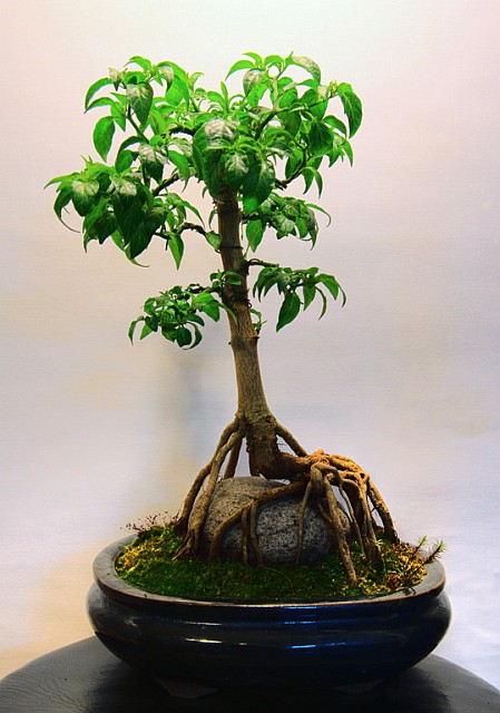 A bonchi project doing nicely. At some point I will shorten the stem and form the foliage a little lower.
